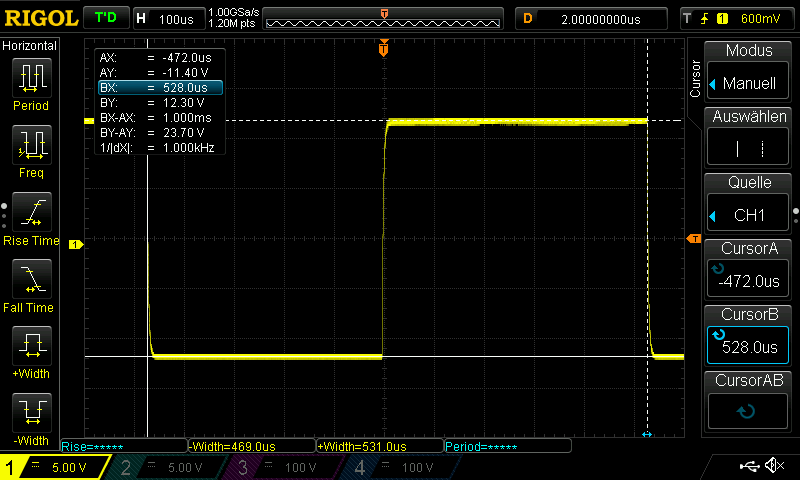 Now select PWM State F. This outputs constant -12 V on the CP line.