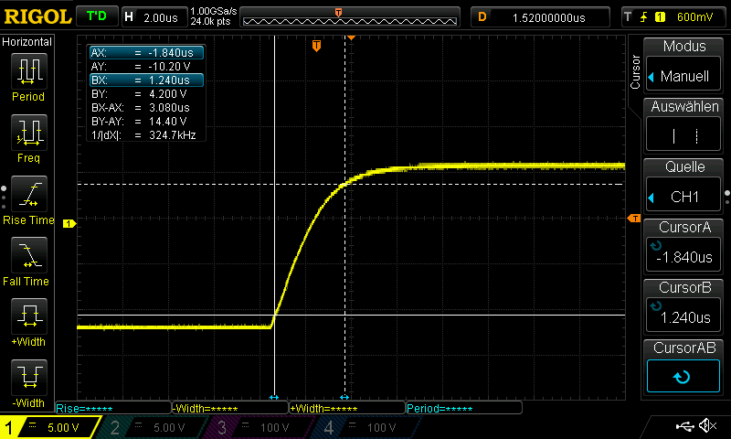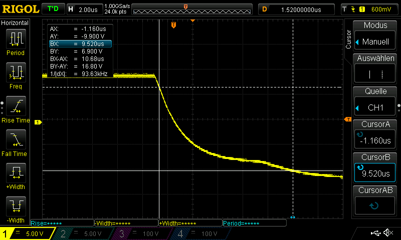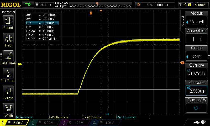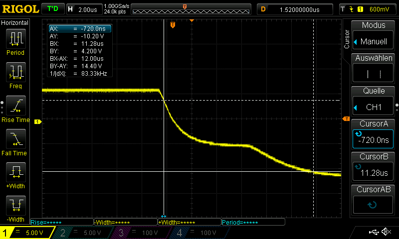 Make sure to observe the correct timing under real conditions with a car attached. With an open circuit and the 2 µs rise time, timing may be perfect, but with a car attached and a 10 µs rise time it may not work correctly.