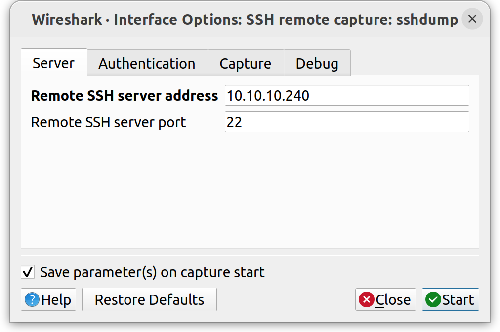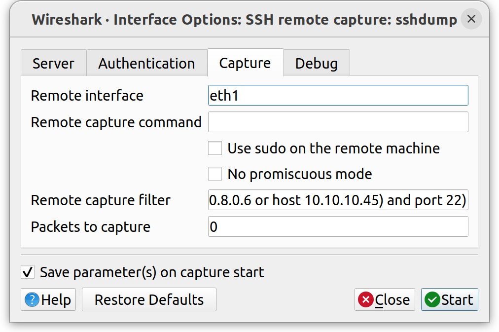 Next, select Capture and type in the network interface on the target