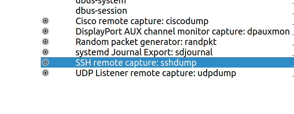To start a remote live capture session in Wireshark, click on the small gear symbol next to: