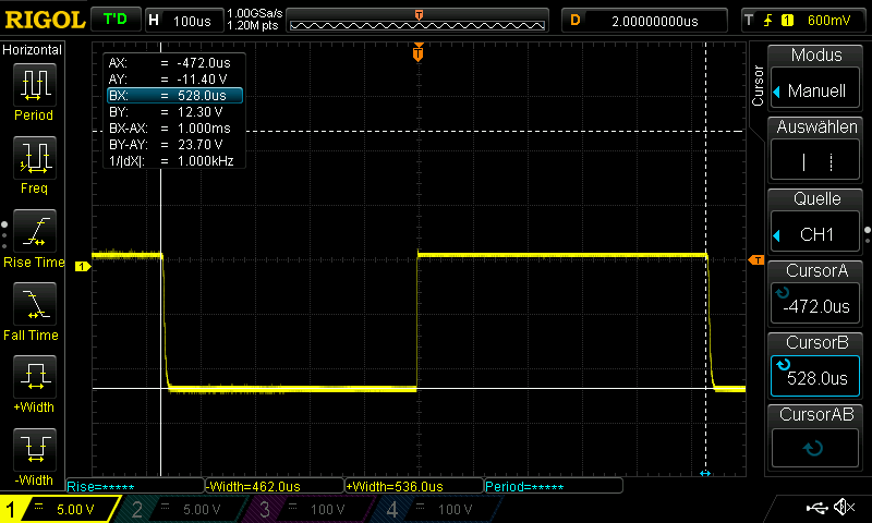 Now select PWM State F. This outputs constant -12 V on the CP line.